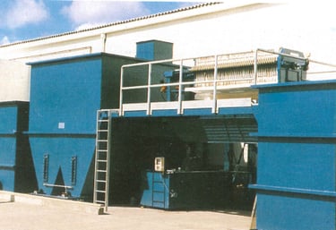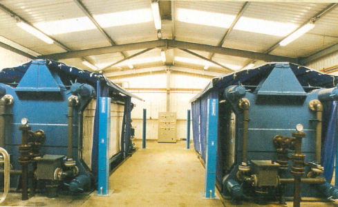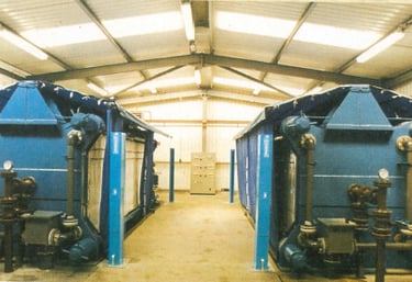 1500 x 1500mm square, recessed plate filter presses used for treatment of drinking water in a large Scottish town.